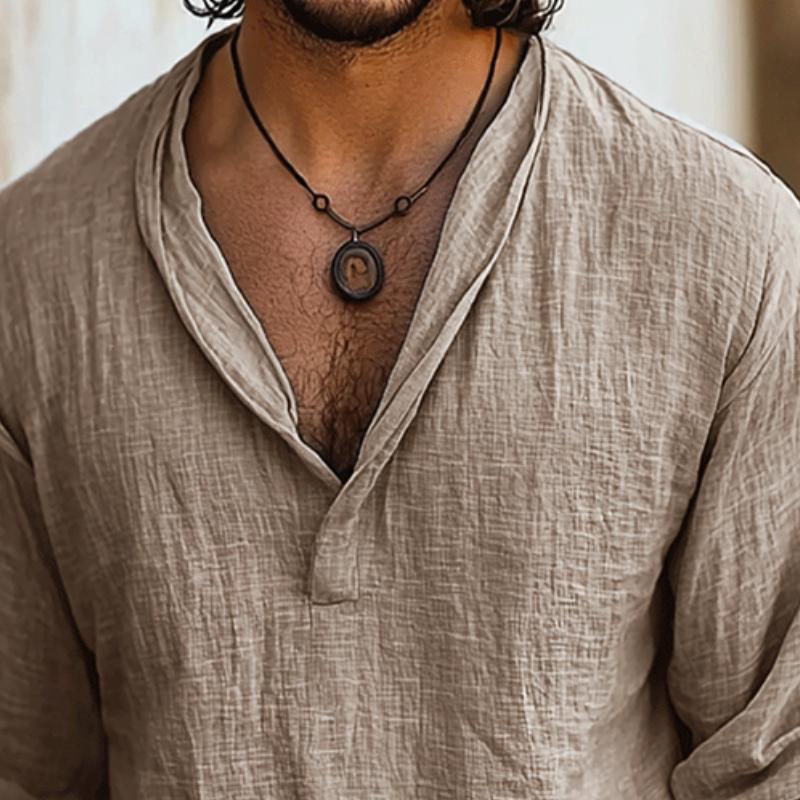 Pánská retro casual košile z bavlny a lnu s dlouhým rukávem 45851855TO