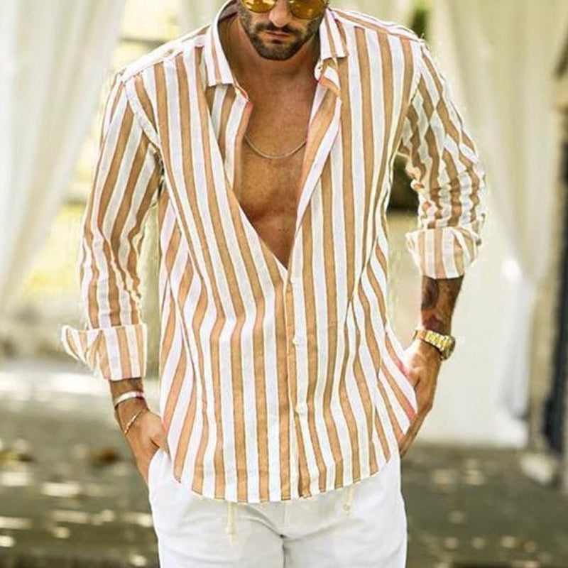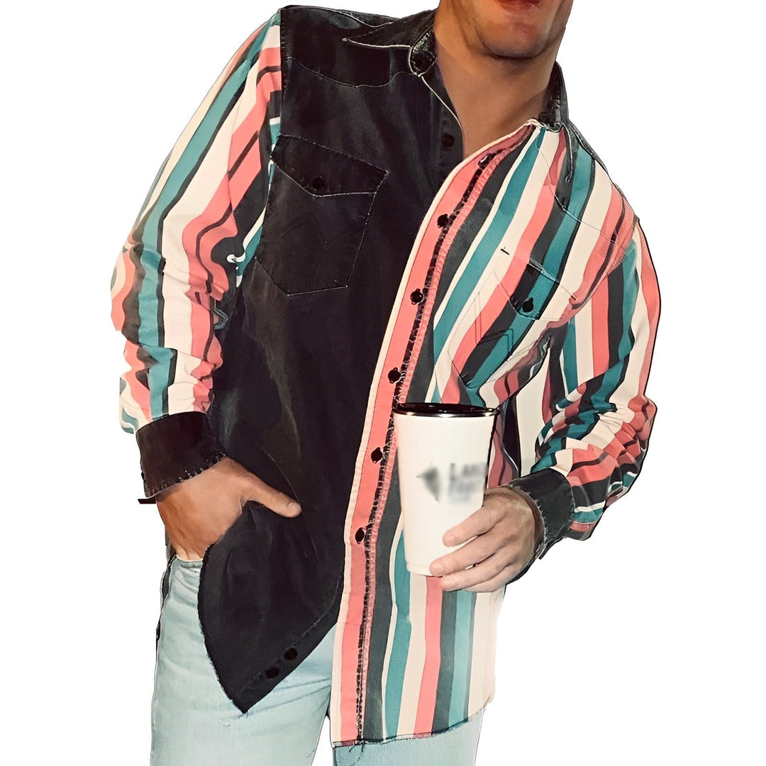 【24-hodinové doručení】Pánská košile v westernovém stylu s pruhovaným potiskem na dovolenou s dlouhým rukávem 43560067X