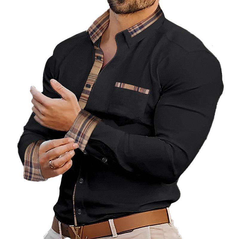Pánská retro casual košile s kostkovaným vzorem, kapsou a límečkem, s dlouhým rukávem 62039387TO
