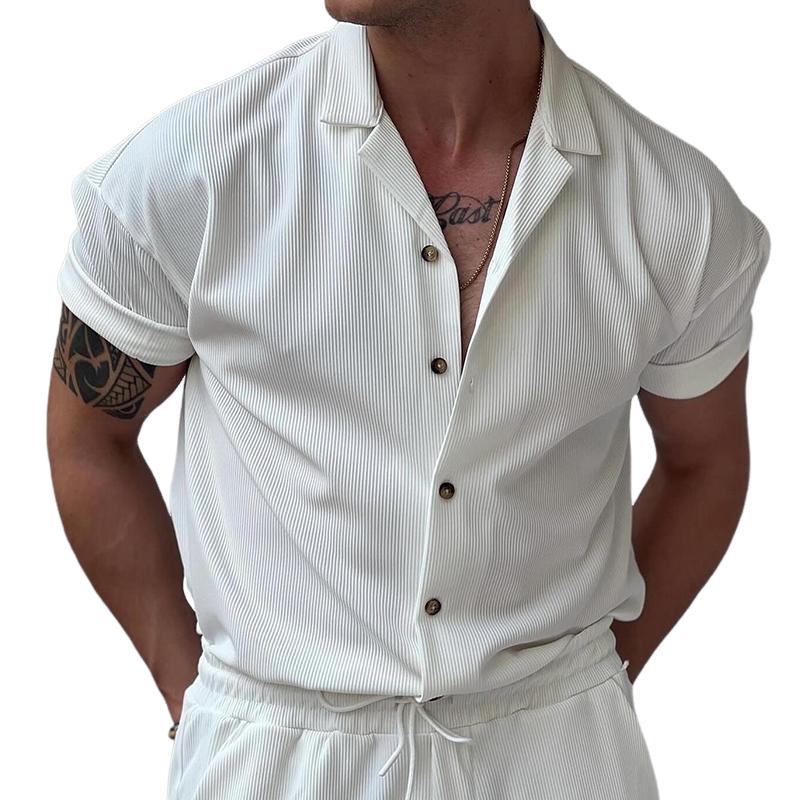 Pánská saténová košile s plisovaným límcem a krátkým rukávem MTA0317G0Z