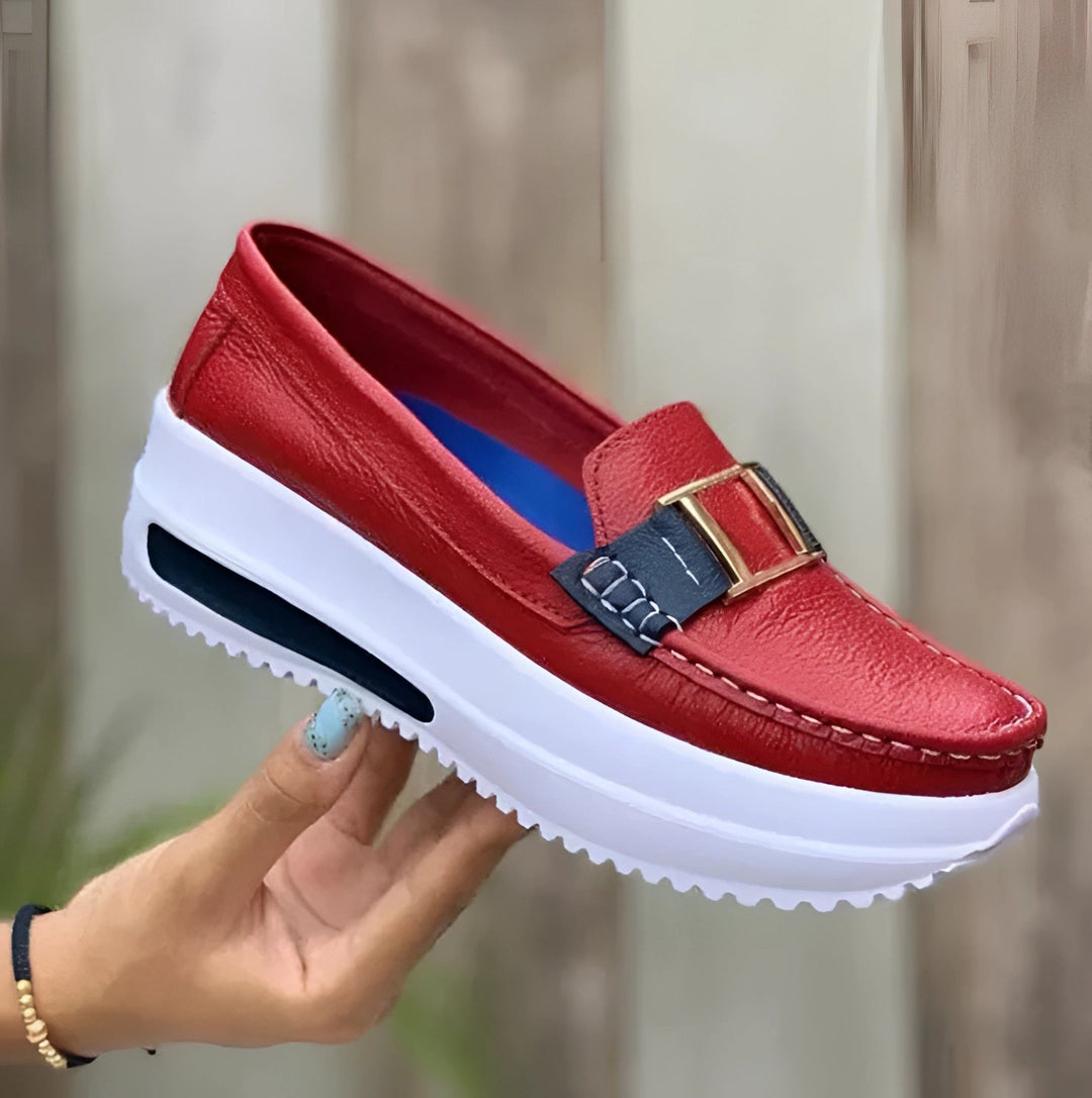 Červené Kožené Polobotky na Platformě pro Ženy s Módní Sponou