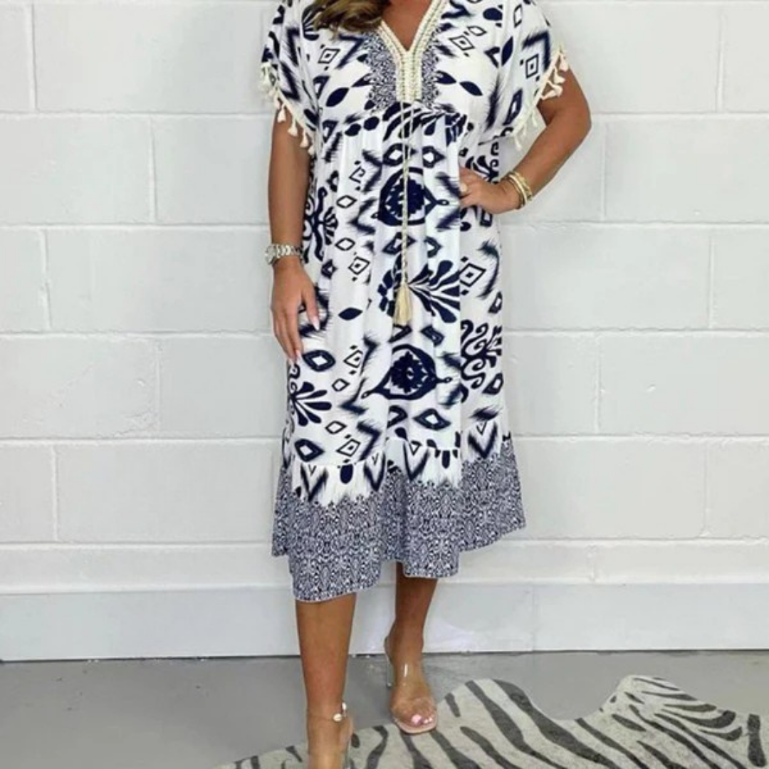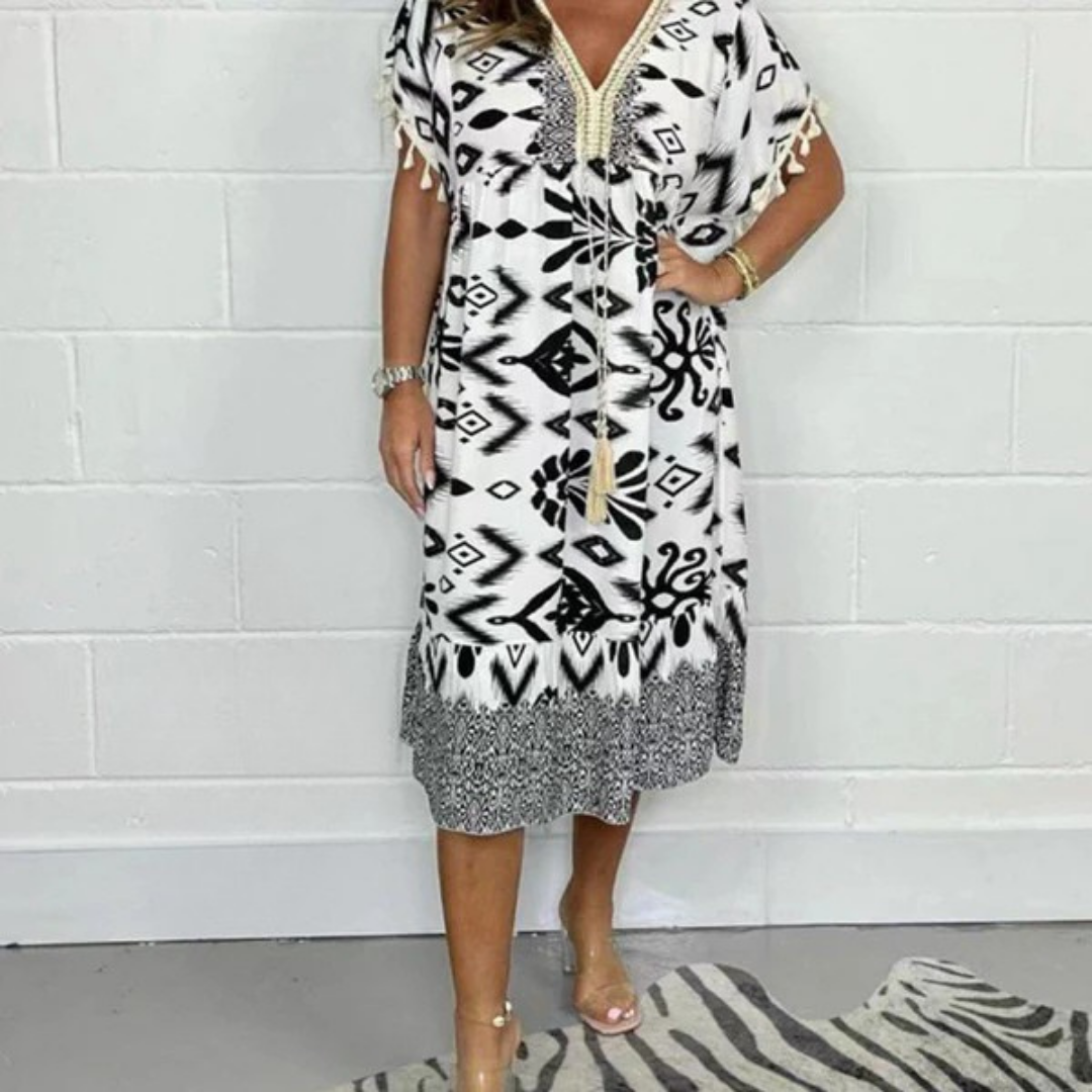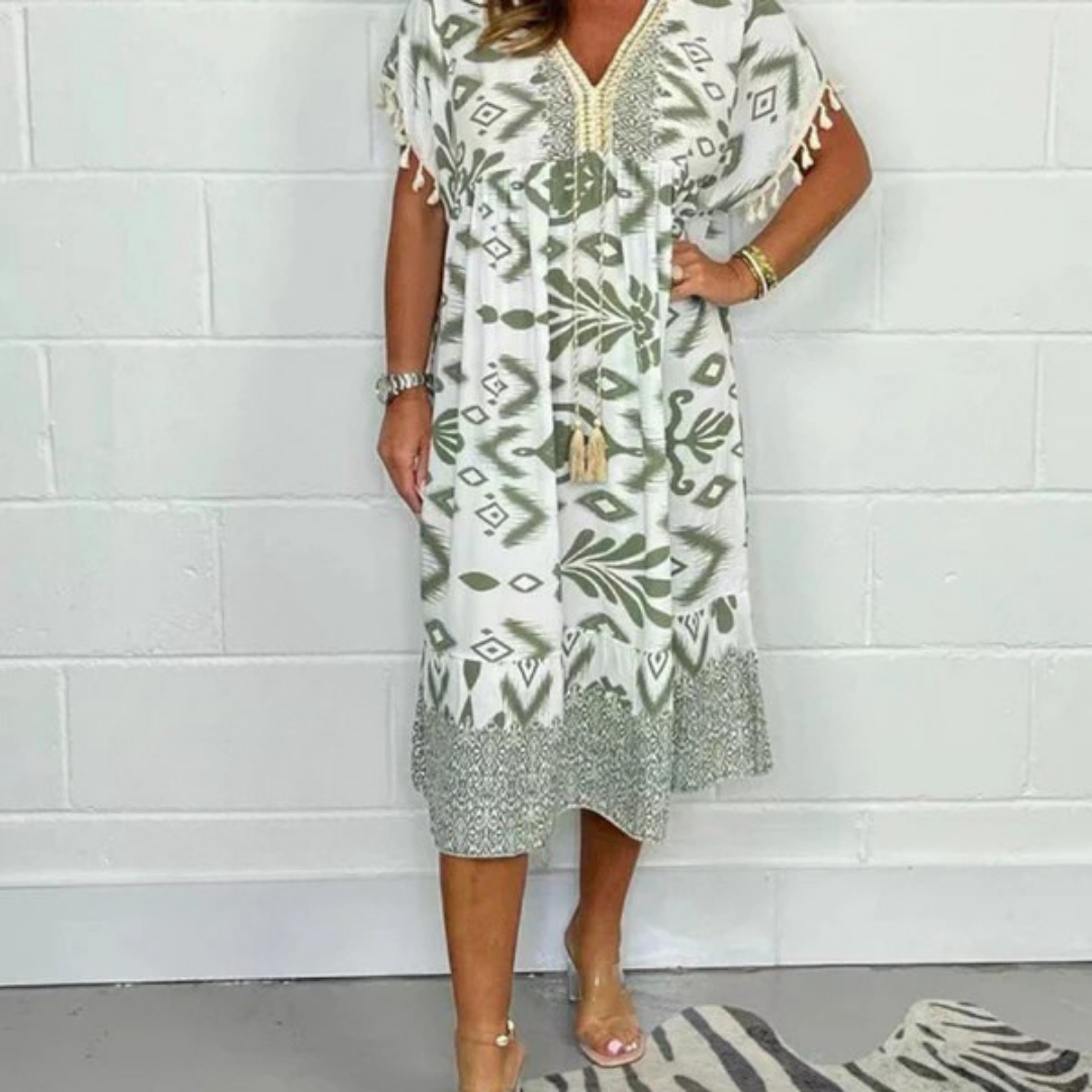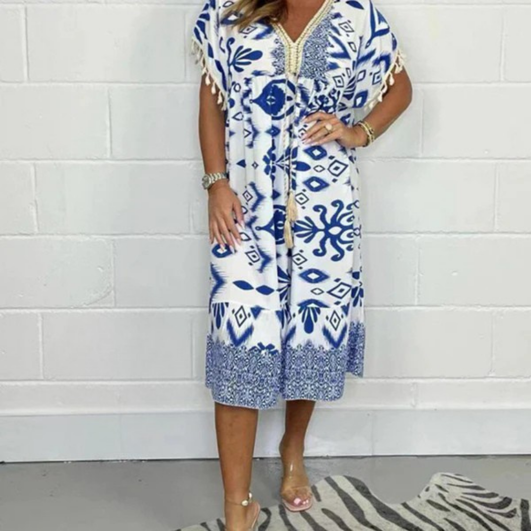 Nadia | Letní šaty s výstřihem do V a třásněmi na krátkých rukávech