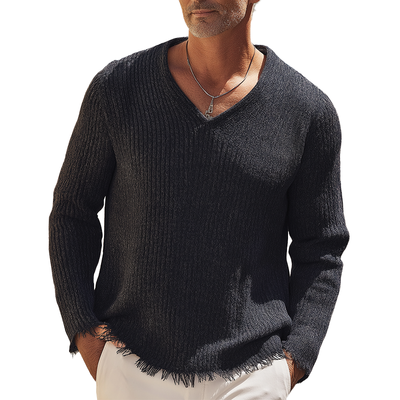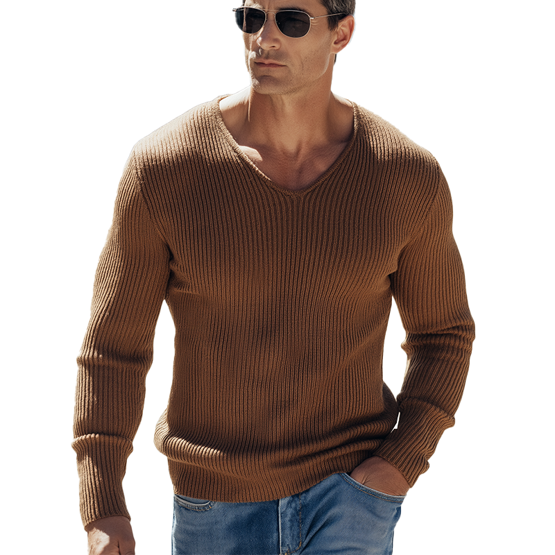 Pánský Jednoduchý Pletený Svetřík v Jednoduché Barvě s Výstřihem do V